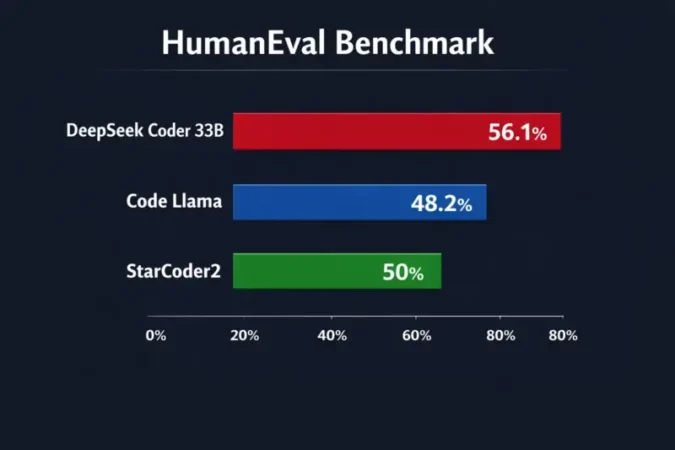 DeepSeek Coder is the model that surprised everyone. Released by DeepSeek AI with a fully permissive MIT license, the 33B version currently holds the highest publicly verified benchmark scores among freely available open-source code models.