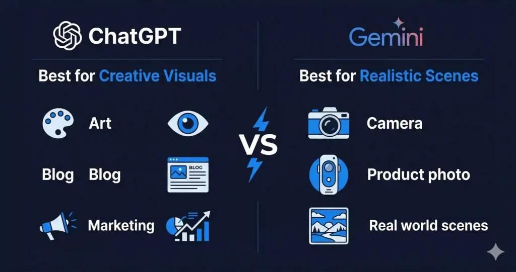 This guide covers exactly that. By the end you will have a repeatable framework for generating professional images in both ChatGPT and Gemini, understand what each platform does best, and have real prompt templates you can use immediately for blog images, social media, and marketing creatives.
