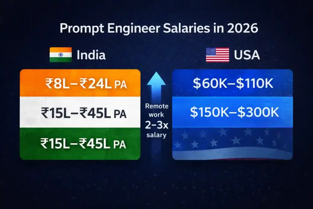 The most significant salary jump for Indian-based prompt engineers comes from working remotely for US or European companies. Remote roles with international employers typically pay two to three times the equivalent local salary for the same level of experience, because companies are paying for the skill rather than the local market rate.